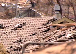 A strong gust of wind came and peeled back the iron on the roof, the roof exploded in flame and the house was gone.