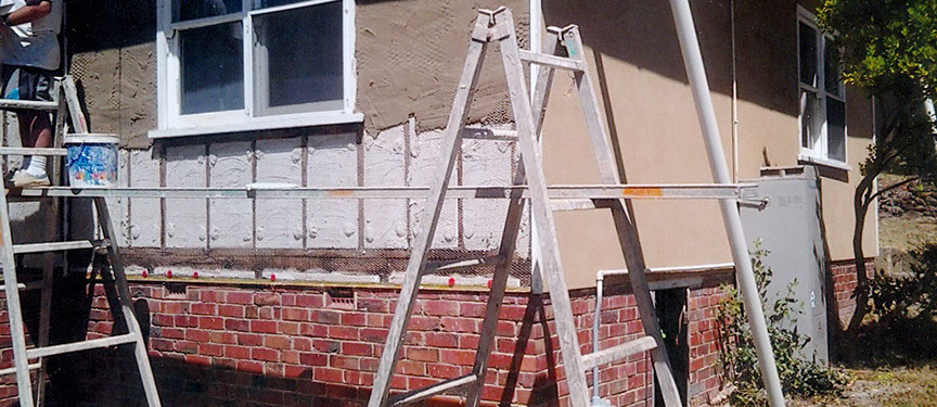Trowelling of Fireshield RoofRenda over top of raftersand between